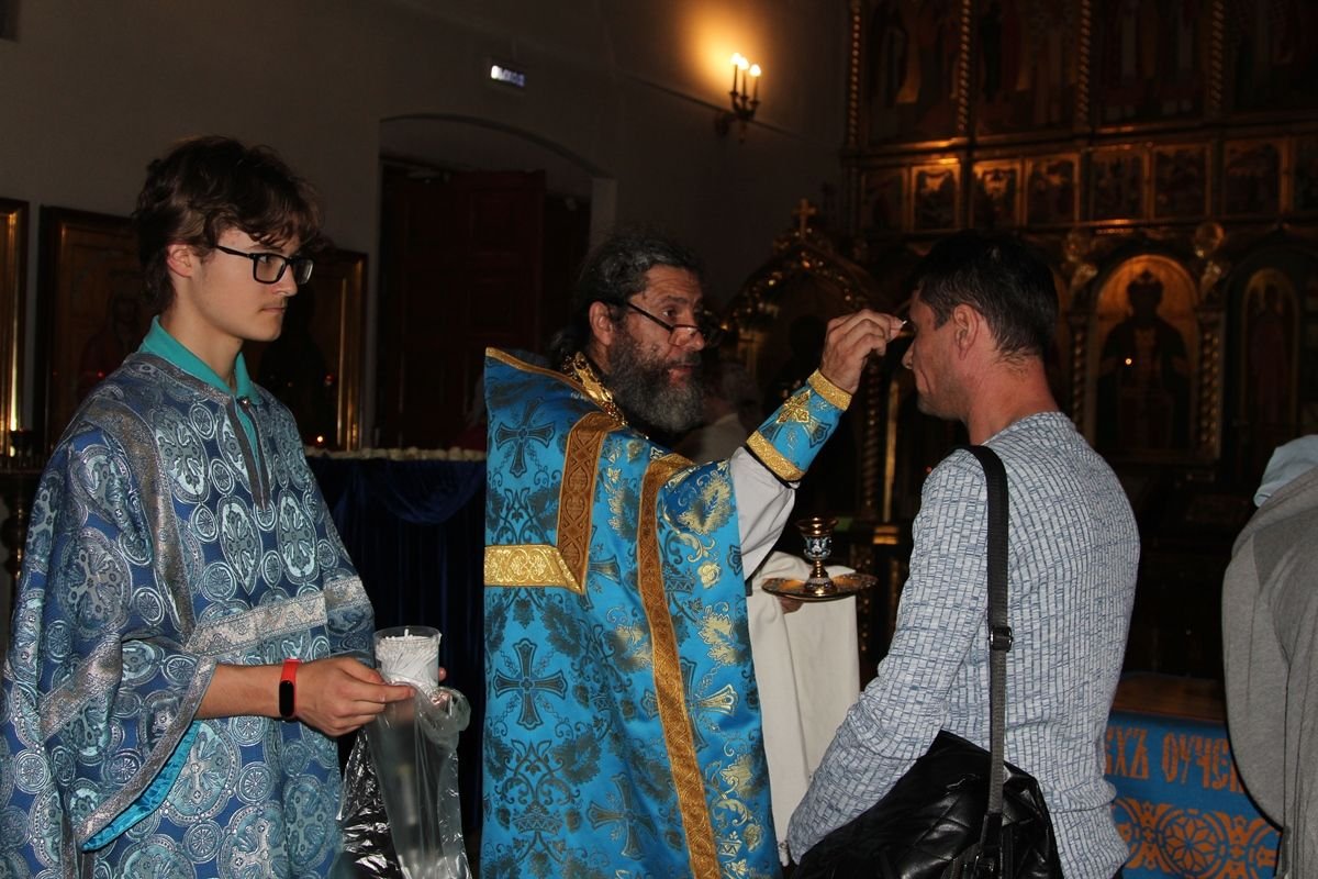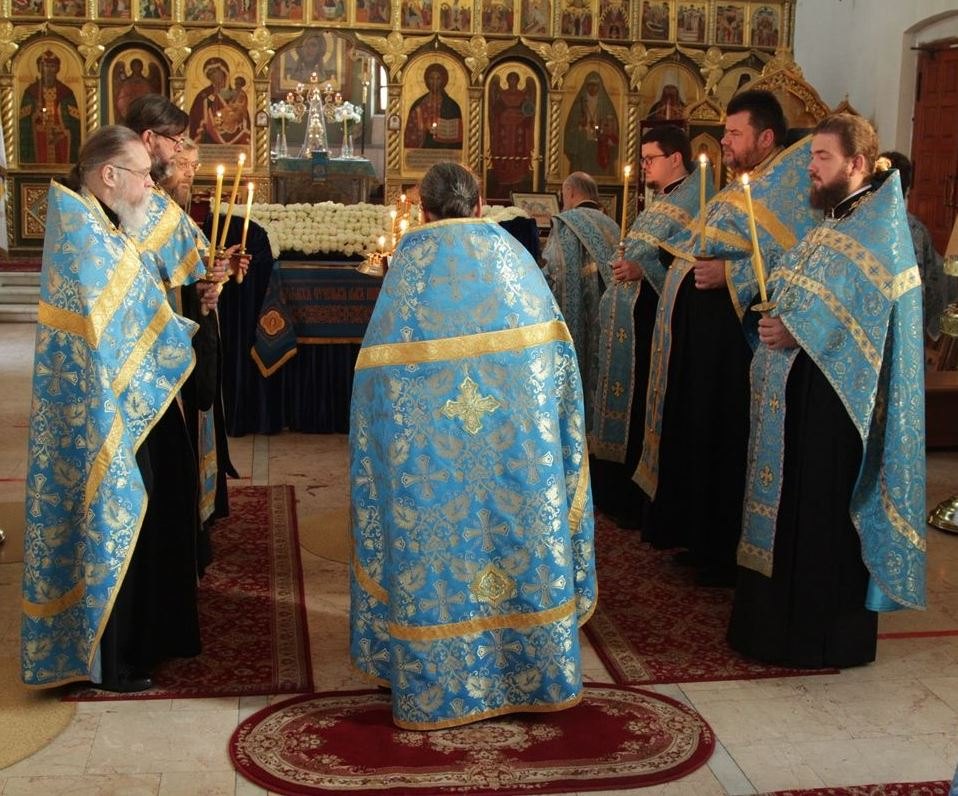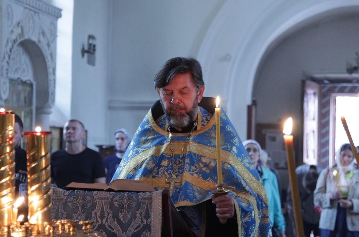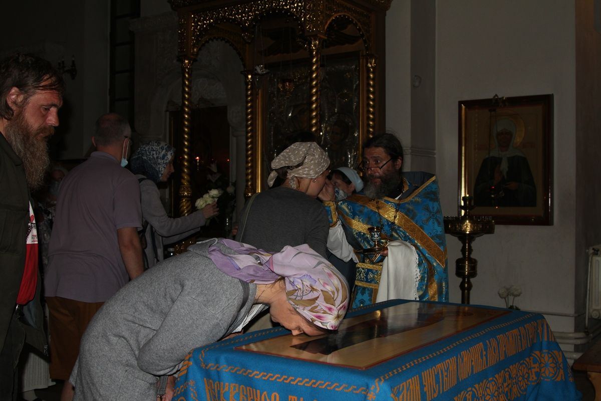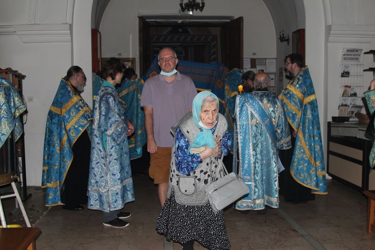 Вечером 30 августа 2020 года настоятель казачьего храма иконы Божией Матери «Отрада и Утешение» на Ходынском поле г. Москвы протоиерей Иоанн Кудрявцев совершил вечерню с чином погребения Божией Матери.