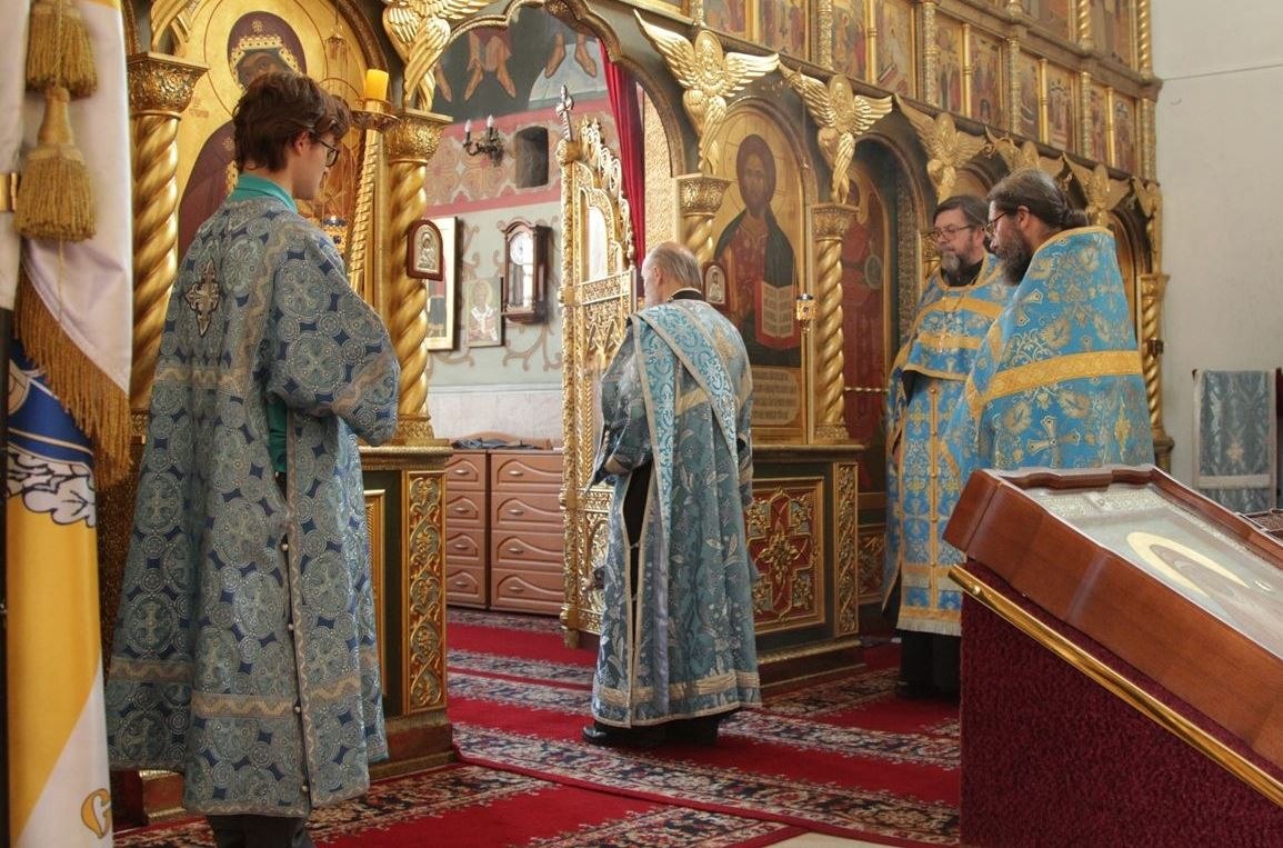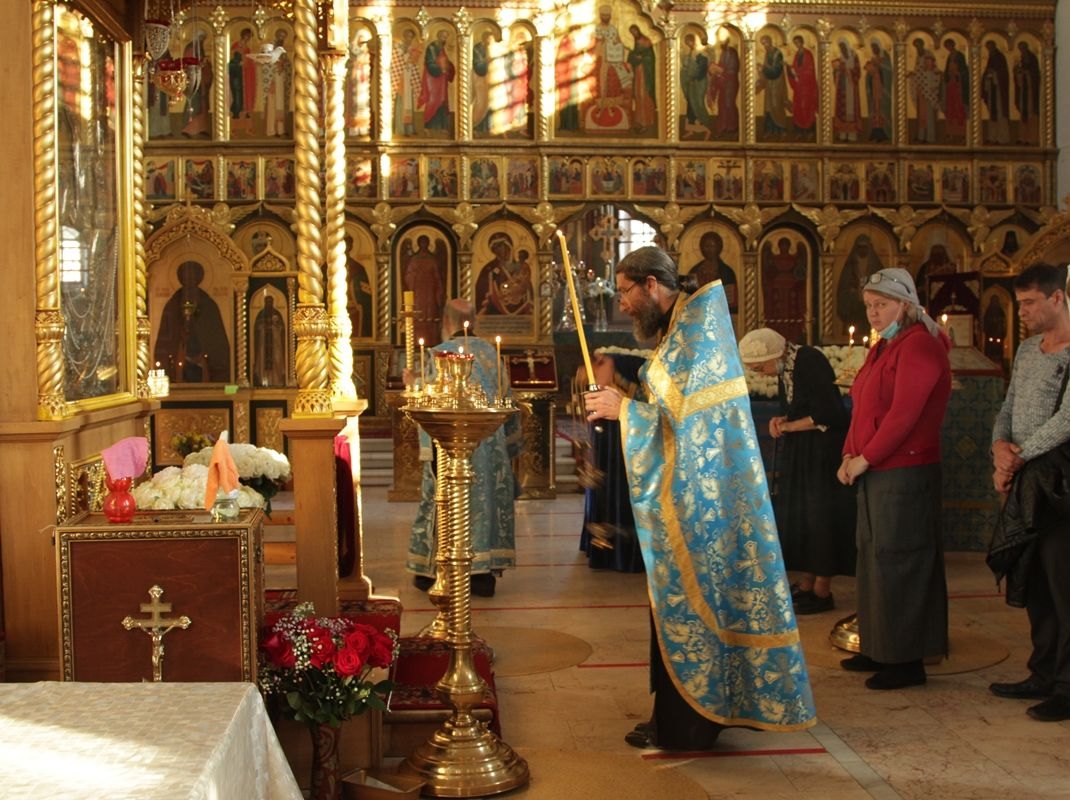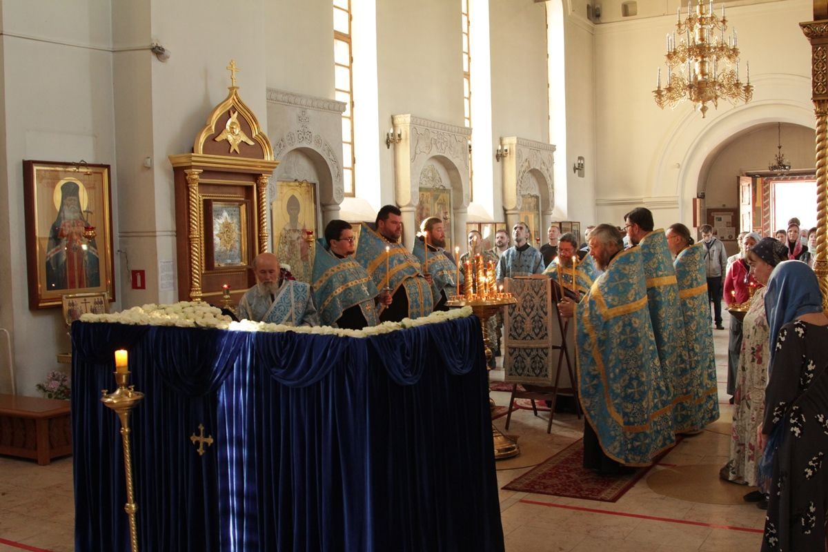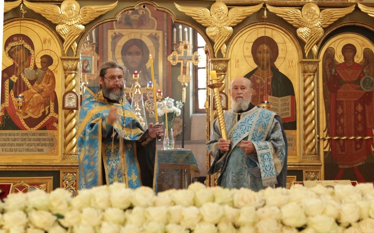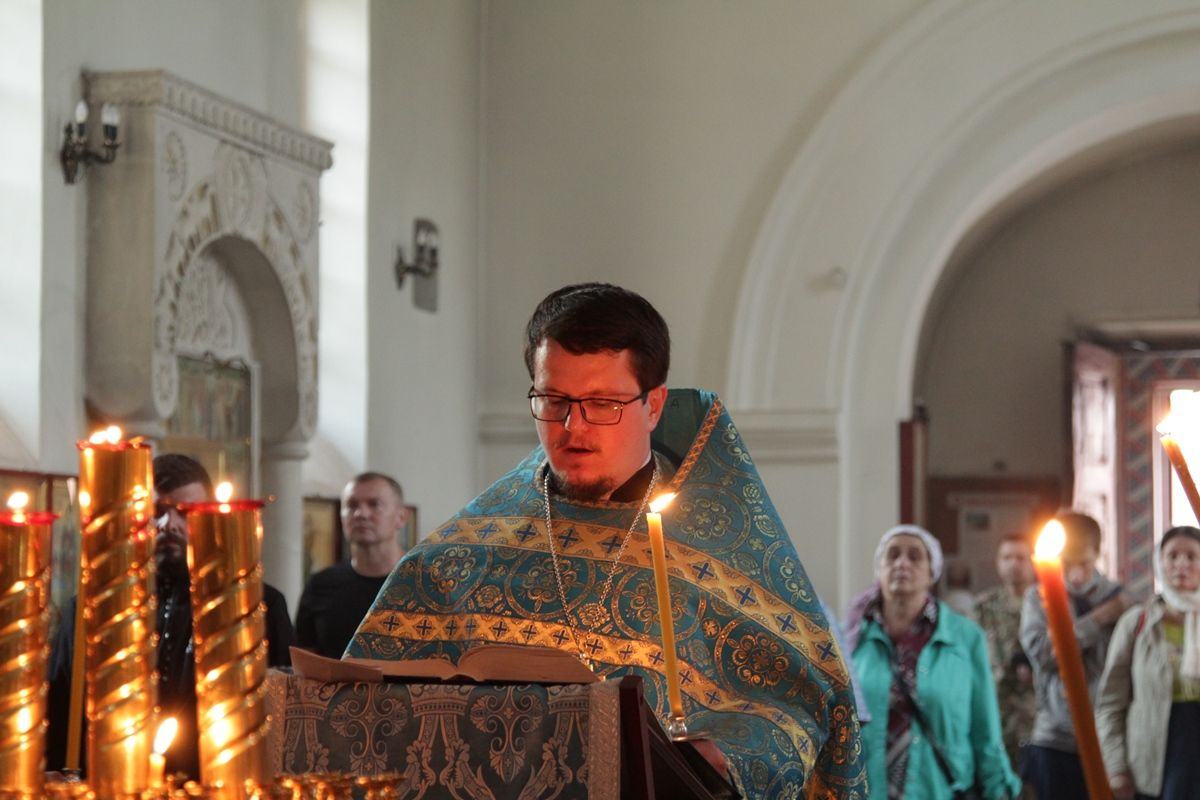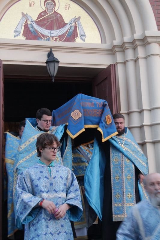 Вечером 30 августа 2020 года настоятель казачьего храма иконы Божией Матери «Отрада и Утешение» на Ходынском поле г. Москвы протоиерей Иоанн Кудрявцев совершил вечерню с чином погребения Божией Матери.
