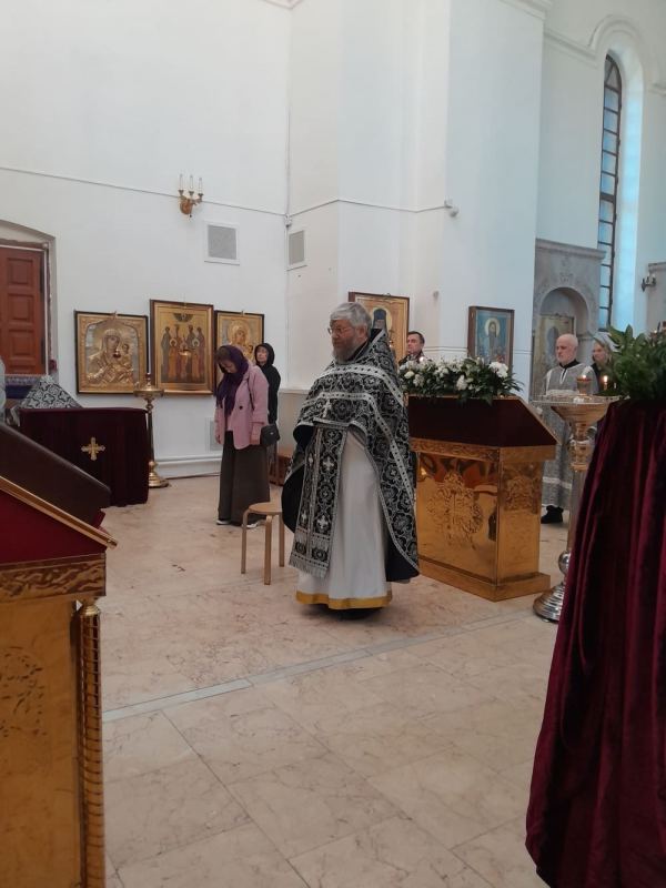 1 мая 2024 года, в среду Страстной седмицы, настоятель храма иконы Божией Матери «Отрада и Утешение» на Ходынском поле г. Москвы протоиерей Иоанн Кудрявцев совершил последнюю в этом году литургию Преждеосвященных Даров.