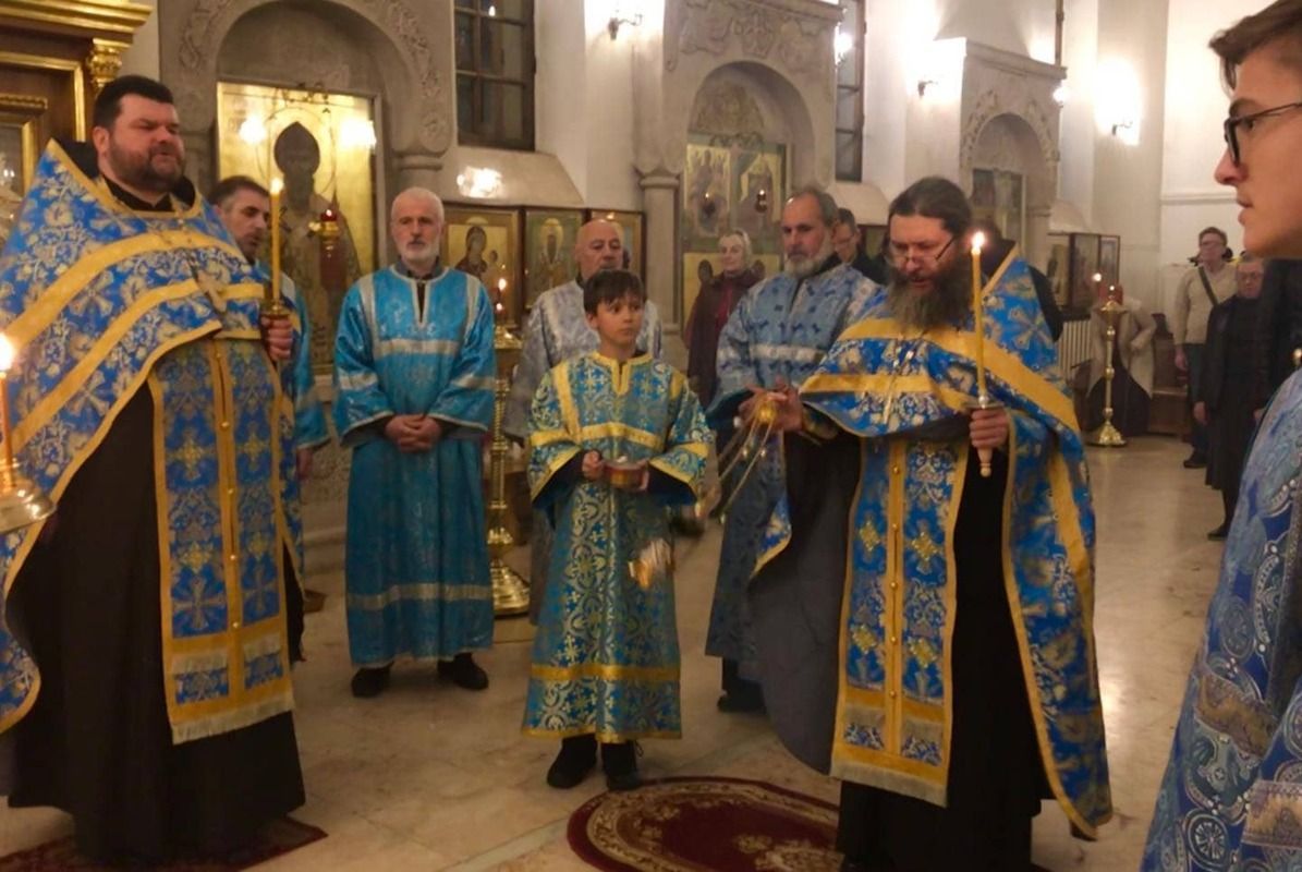 За всенощным бдением духовенство и верующие совершили пение Акафиста Богородице.