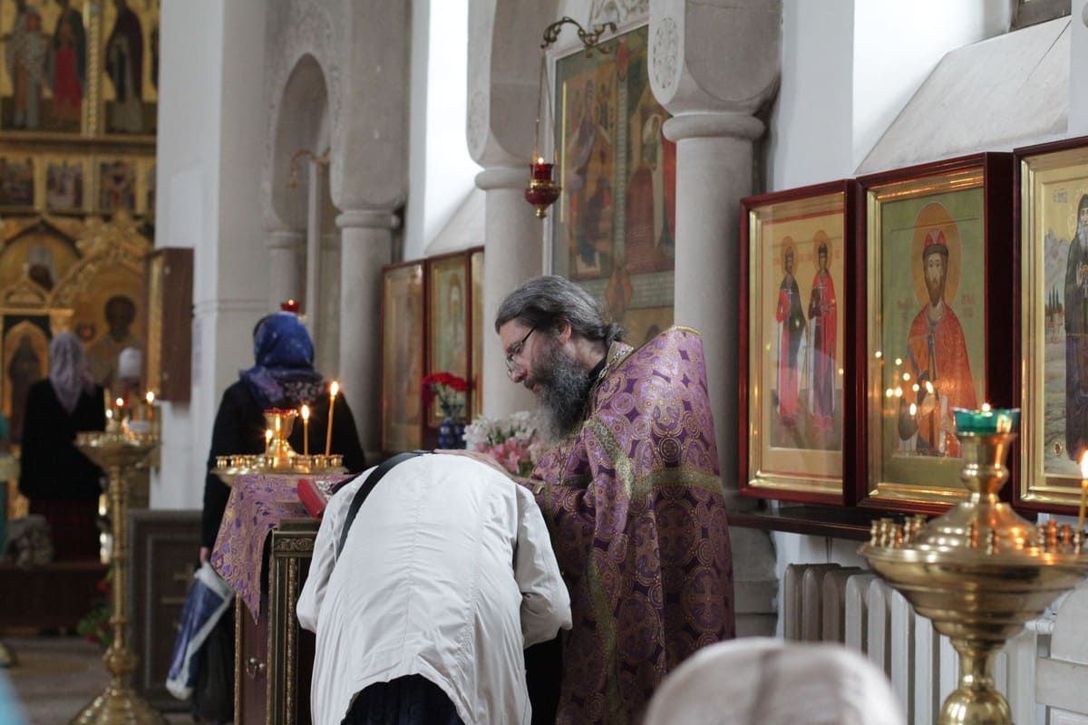 Богослужение совершил настоятель храма протоиерей Иоанн Кудрявцев. Отцу-настоятелю сослужили: иерей Тимофей Чайкин, ответственный секретарь Синодального комитета по взаимодействию с казачеством; протоиерей Борис Ланчиков; диакон Александр Гарбуз.