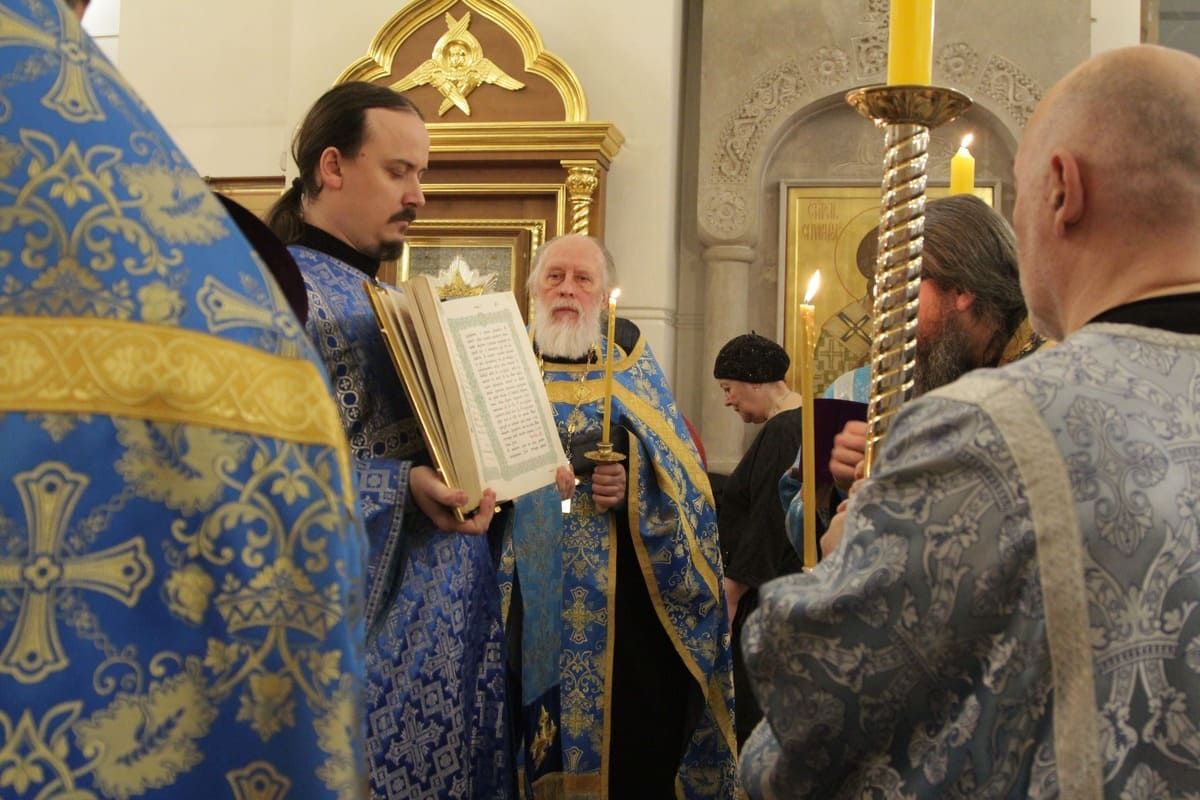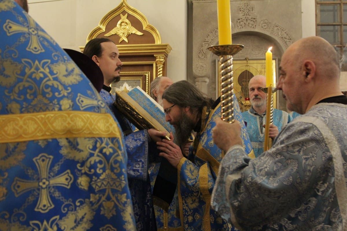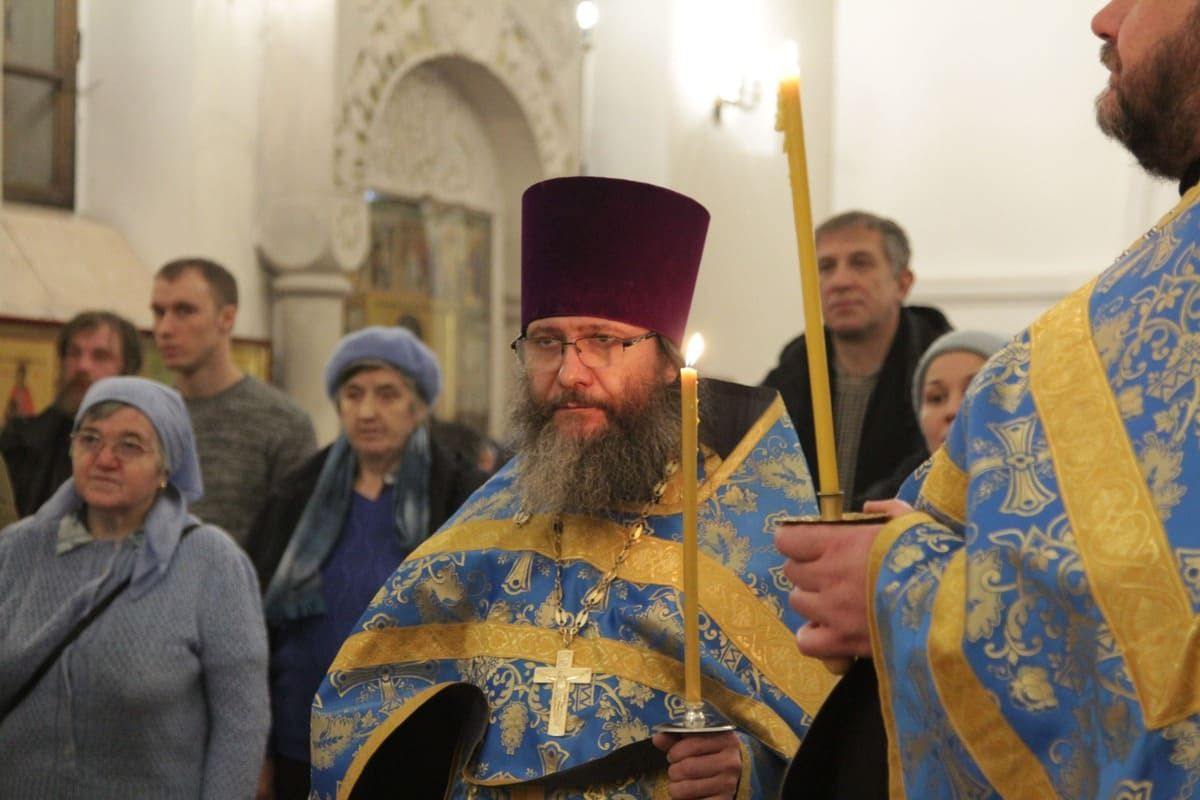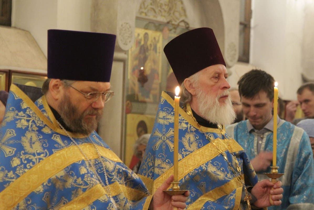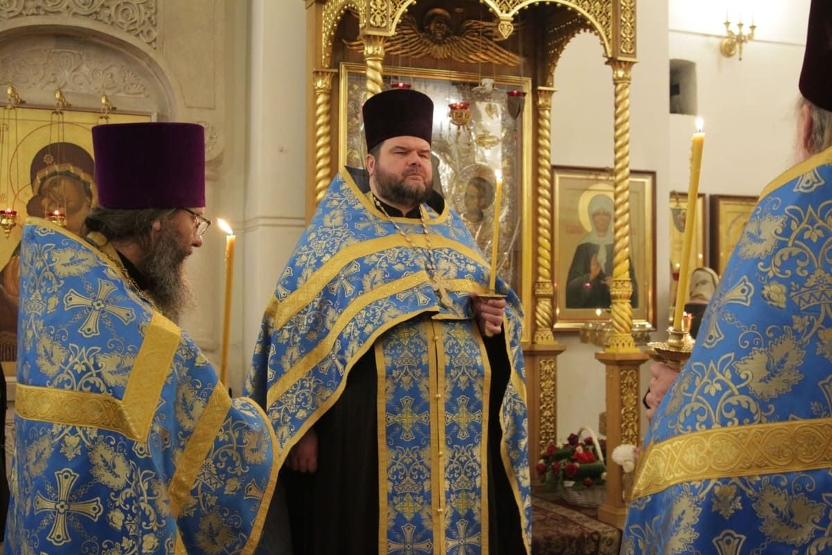 Богослужение совершил настоятель храма протоиерей Иоанн Кудрявцев в сослужении клириков храма протоиерея Сергия Рождественского, протоиерея Владимира Купарева, иерея Александра Туманова, диакона Александра Гарбуза.