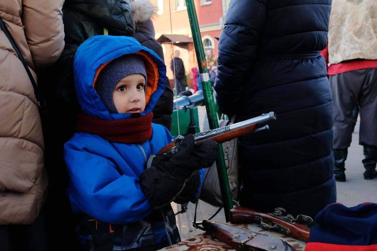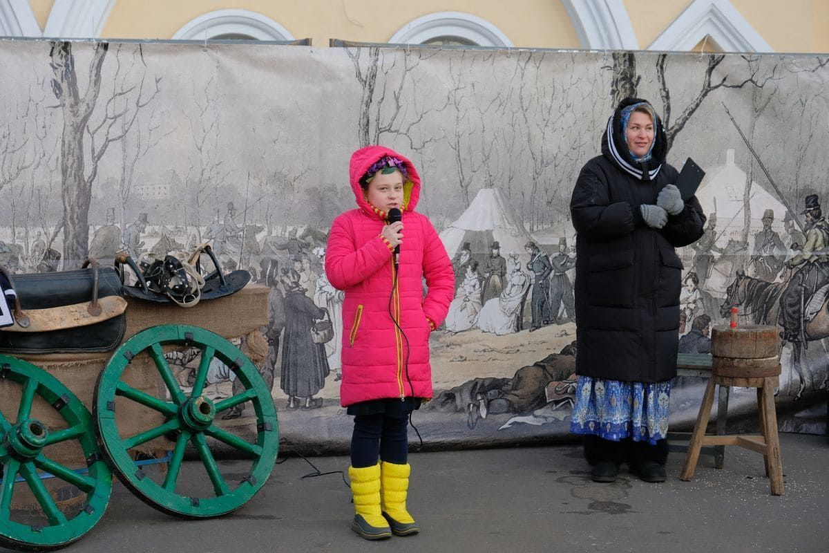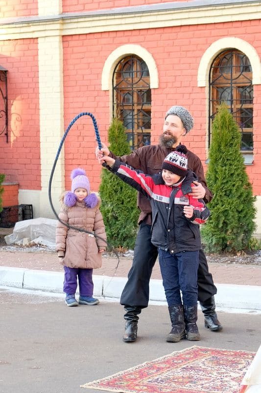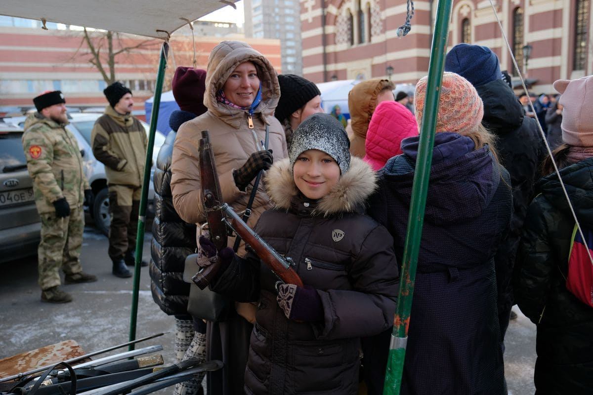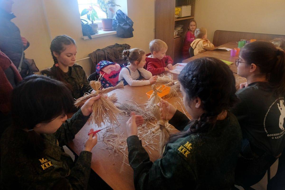 В помещении Синодального комитета мы услышали рассказ-притчу о казаках в исполнении казака Ильи Ипатова. Также прошли мастер-классы по лыковой кукле и росписи игрушек, выступил хор учеников воскресной школы казачьего храма. Совместно с казаками дети исполнили песню «Едут по Берлину наши казаки».