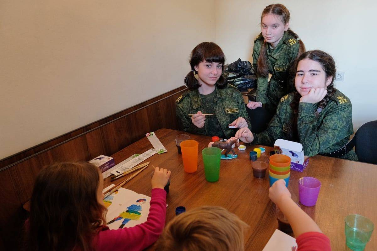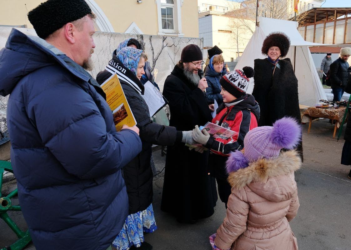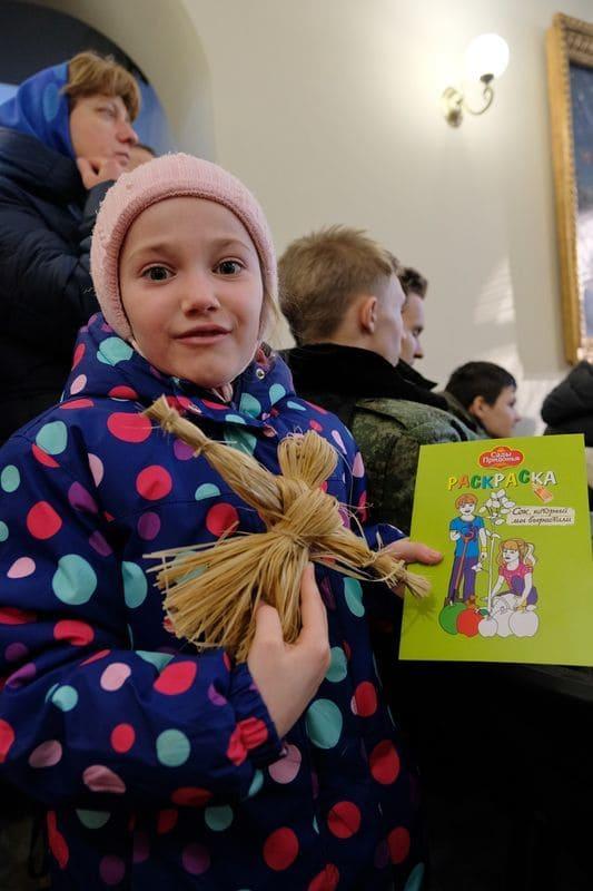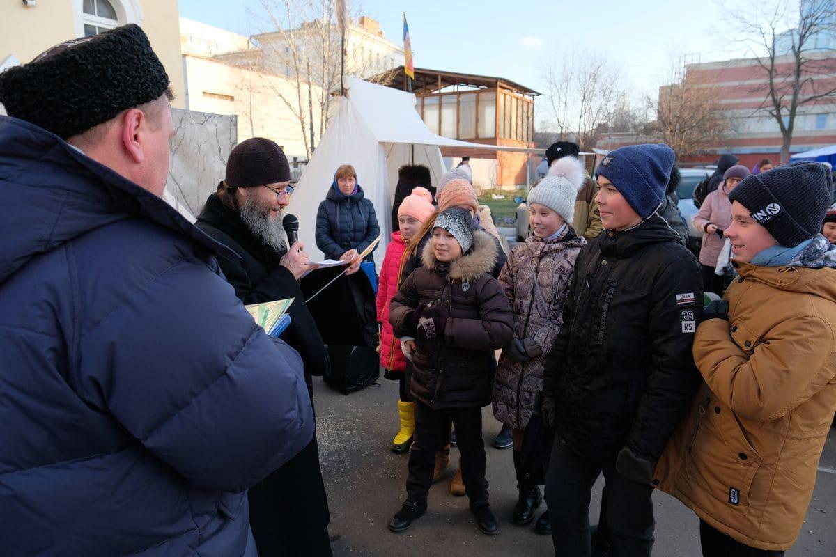 В помещении Синодального комитета мы услышали рассказ-притчу о казаках в исполнении казака Ильи Ипатова. Также прошли мастер-классы по лыковой кукле и росписи игрушек, выступил хор  учеников воскресной школы казачьего храма. Совместно с казаками дети исполнили песню «Едут по Берлину наши казаки».