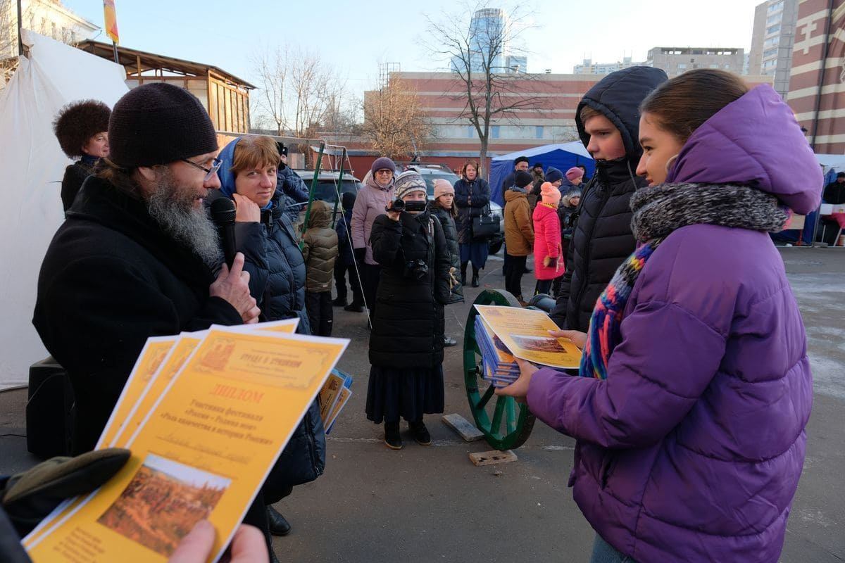 Ученики общеобразовательной школы №1550 Гура Полина (10 класс), Ермаченков Василий (11 класс), Корсаков Алексей (11 класс) под руководством учителя Гусевой Натальи Владимировны создали фильм об истории казачьего храма иконы Божией Матери «Отрада и Утешение» на Ходынском поле г. Москвы «На страже Отечества». На празднике фильм представили Гура Полина и Корсаков Алексей.