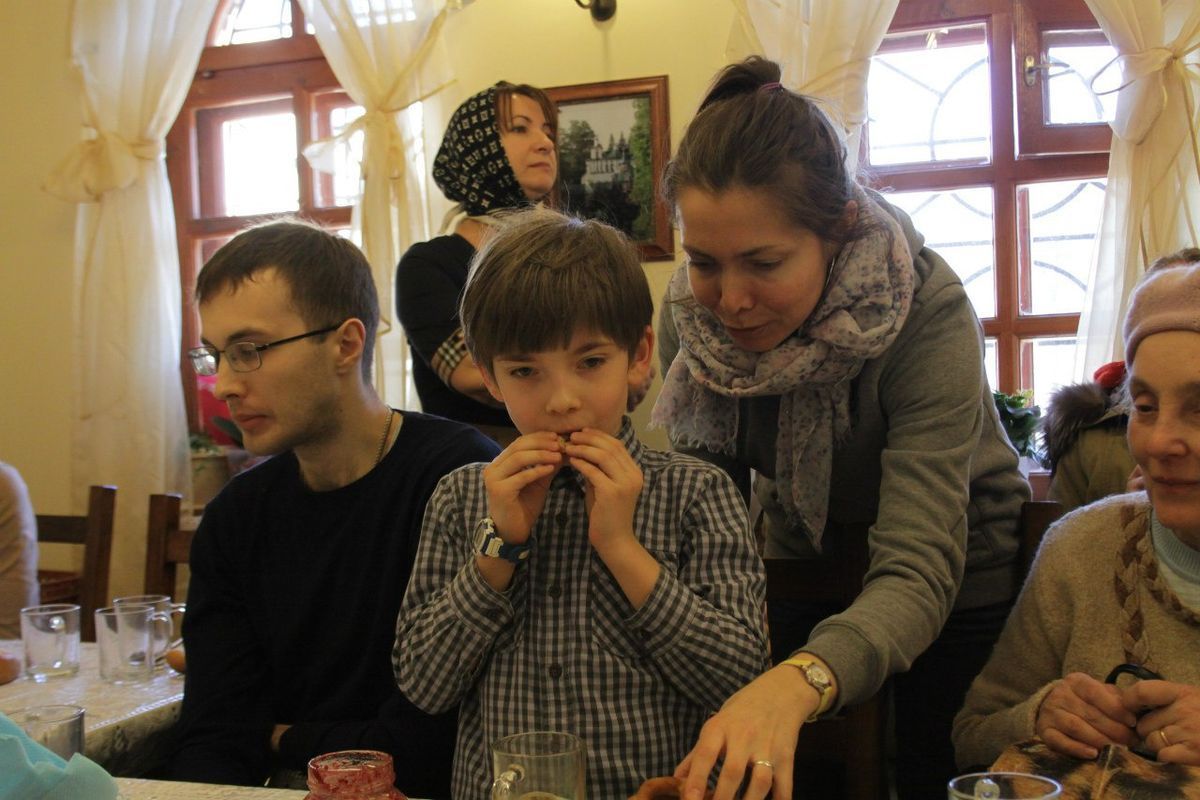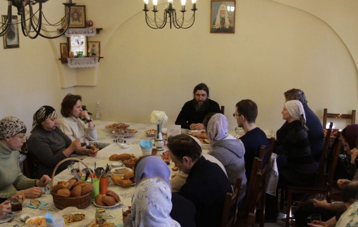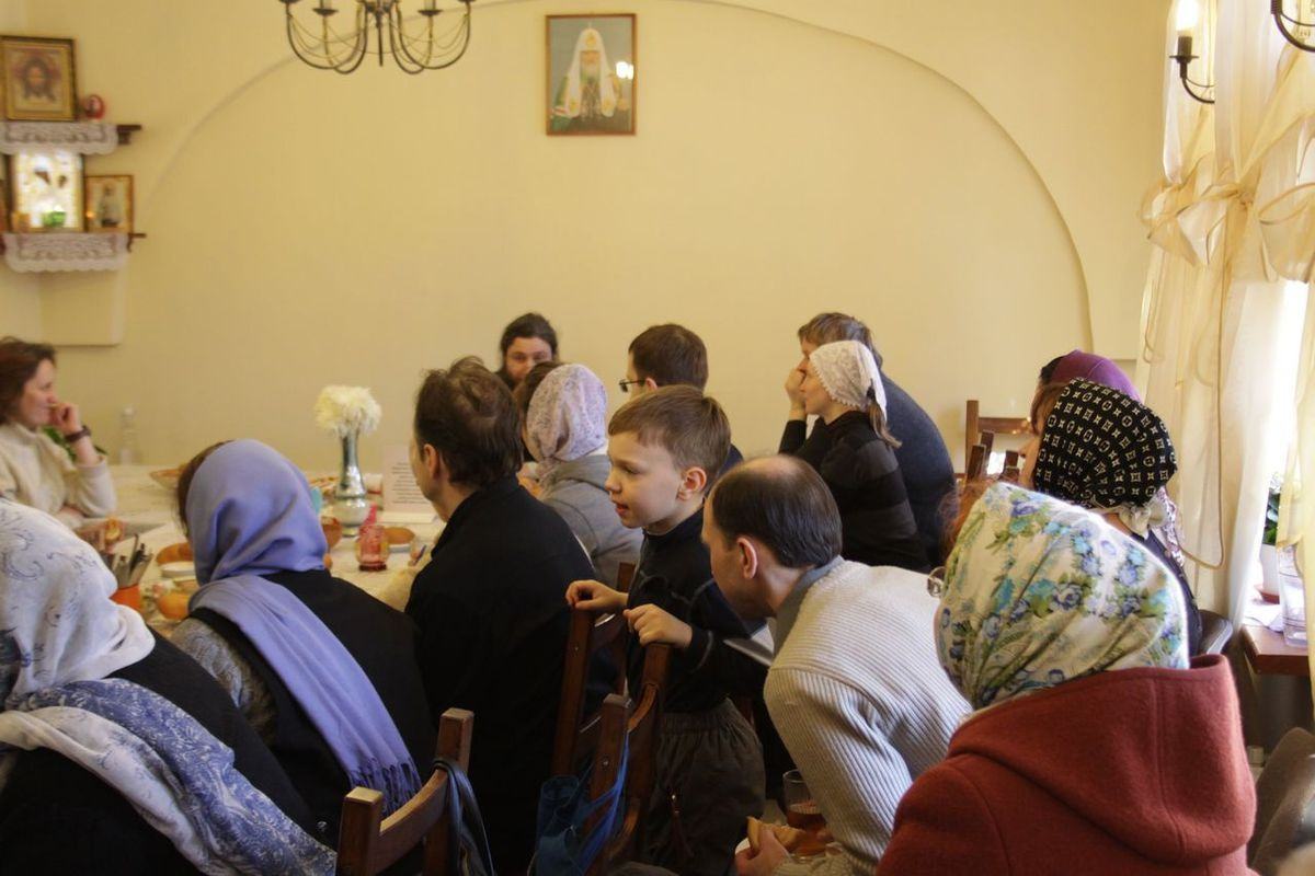 27 марта 2016 года, после Божественной литургии, в трапезной нашего храма состоялась очередная беседа с батюшкой. За чаепитием мы поговорили о жизни и трудах святителя Григория Паламы, память которого празднуется во второе воскресенье Великого поста. Отец Иоанн Кудрявцев, настоятель нашего храма, рассказал нам о нетварном Фаворском свете и Божественной благодати в учении святителя Григория, о значении этого учения в нашей повседневной жизни. Прихожане, в свою очередь, живо участвовали в обсуждении, читали стихи собственного сочинения, задавали вопросы. Встреча прошла в теплой и дружеской обстановке.