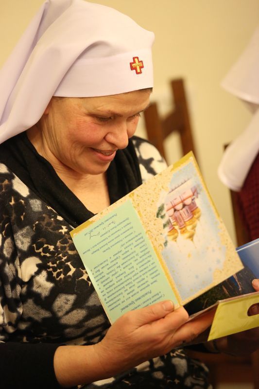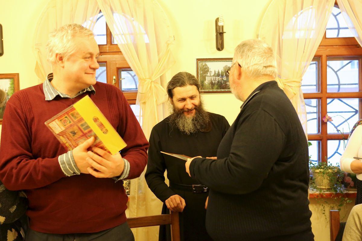 Потом отец Иоанн лично вручил всем собравшимся подарочные наборы из книг, календарей и поздравительных открыток с личной подписью отца-настоятеля.