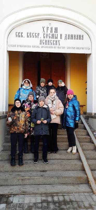 В этот день прошли два мероприятия, организованные методистом и директором Воскресной школы нашего храма Чуфаровской Еленой Евгеньевной совместно со школами: урок, посвященный православной книге для 5-х классов, и экскурсия в храм свв. Космы и Дамиана Асийских для 4-х классов. Экскурсию провел Ерошенко Николай Владимирович, социальный работник и художественный руководитель Театральной студии «Отрада».