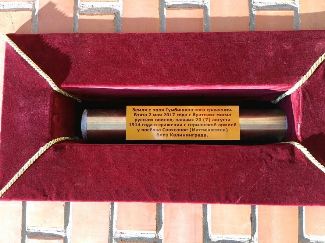 После панихиды в часовню была заложена капсула с землей из Калининградской области – с единственного на территории современной России места боев Первой мировой войны. В конце акции все желающие возложили цветы у подножия мемориальной часовни.