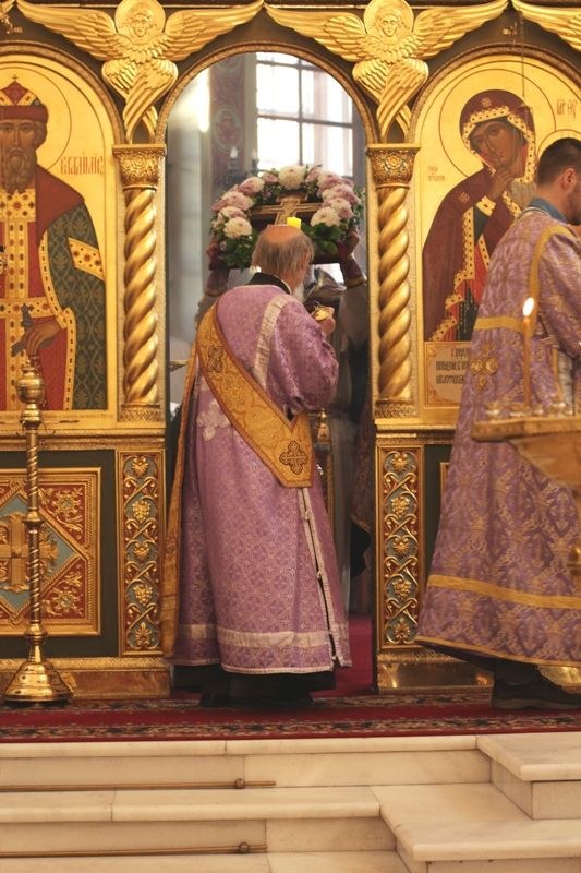 Фоторепортаж: Утреня праздника Происхождения (изнесения) Честных Древ Животворящего Креста Господня 13 августа 2018 года