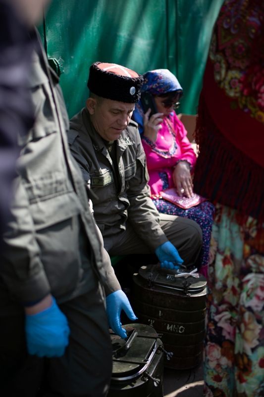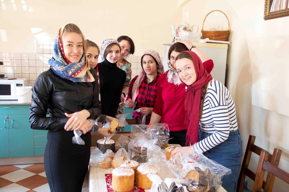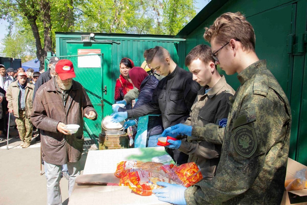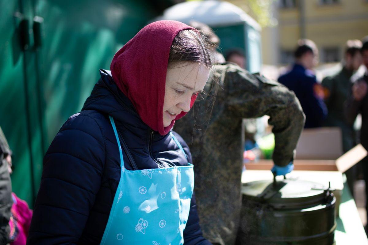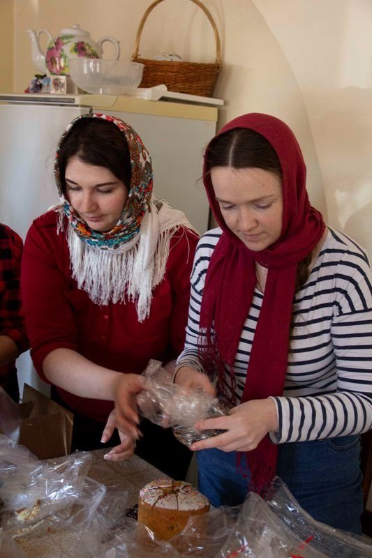 Завершением пасхальной акции стал праздничный обед, который заранее приготовили в трапезной казачьего храма иконы Божией Матери «Отрада и Утешение» на Ходынском поле студентки-казачки Первого казачьего университета под чутким руководством жён атаманов ХКО «Котловка» и ХКО «Сетунь» Тамары Александровны Архаровой и Ольги Владимировны Тихоновой. Бездомных и малоимущих накормили трапезой из трех блюд: шулюма, плова и десерта, состоящего из узвара и куличей. В общей сложности праздничной едой накормили около 120 человек.