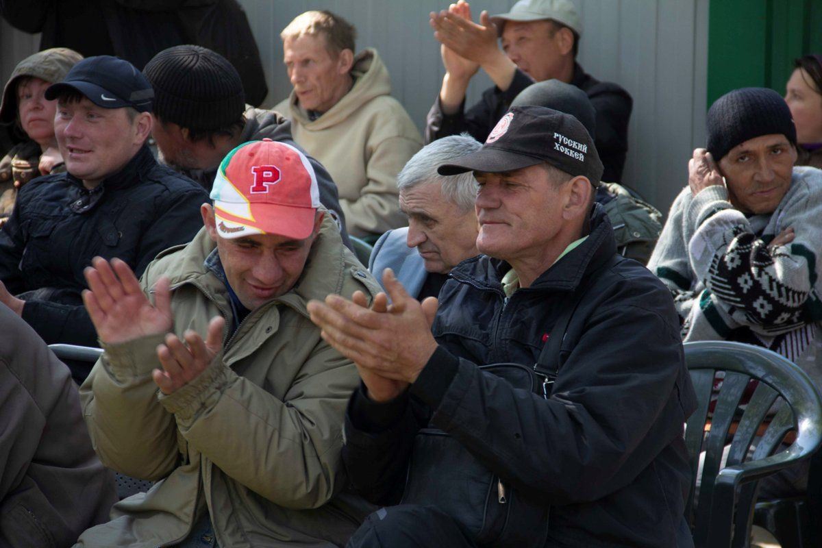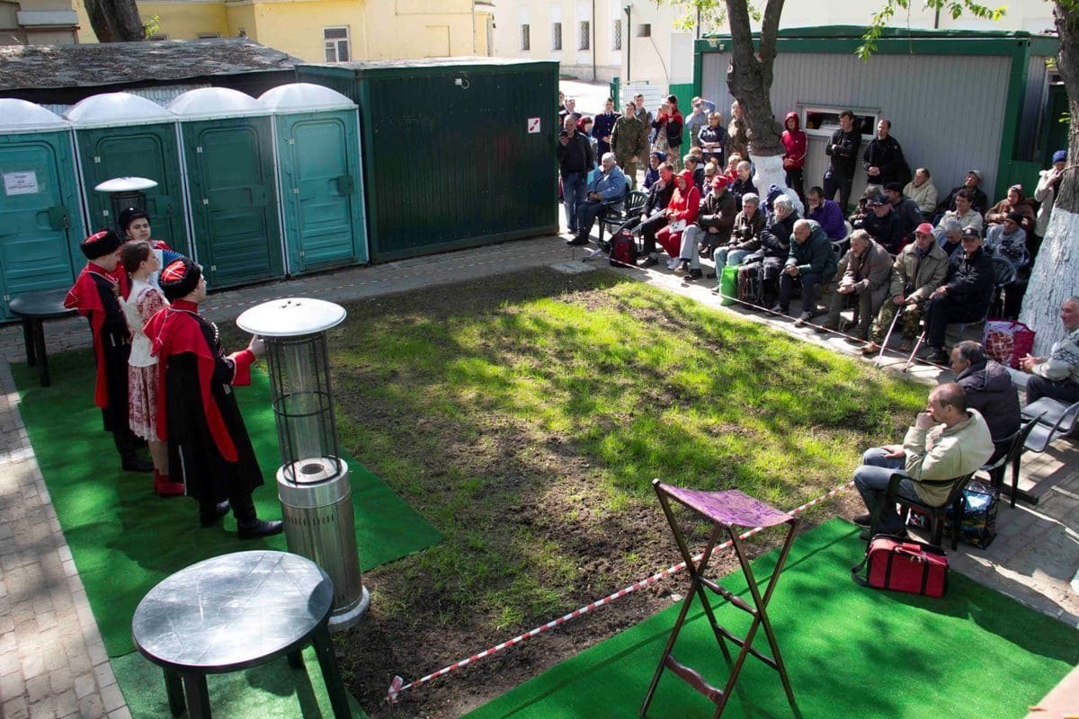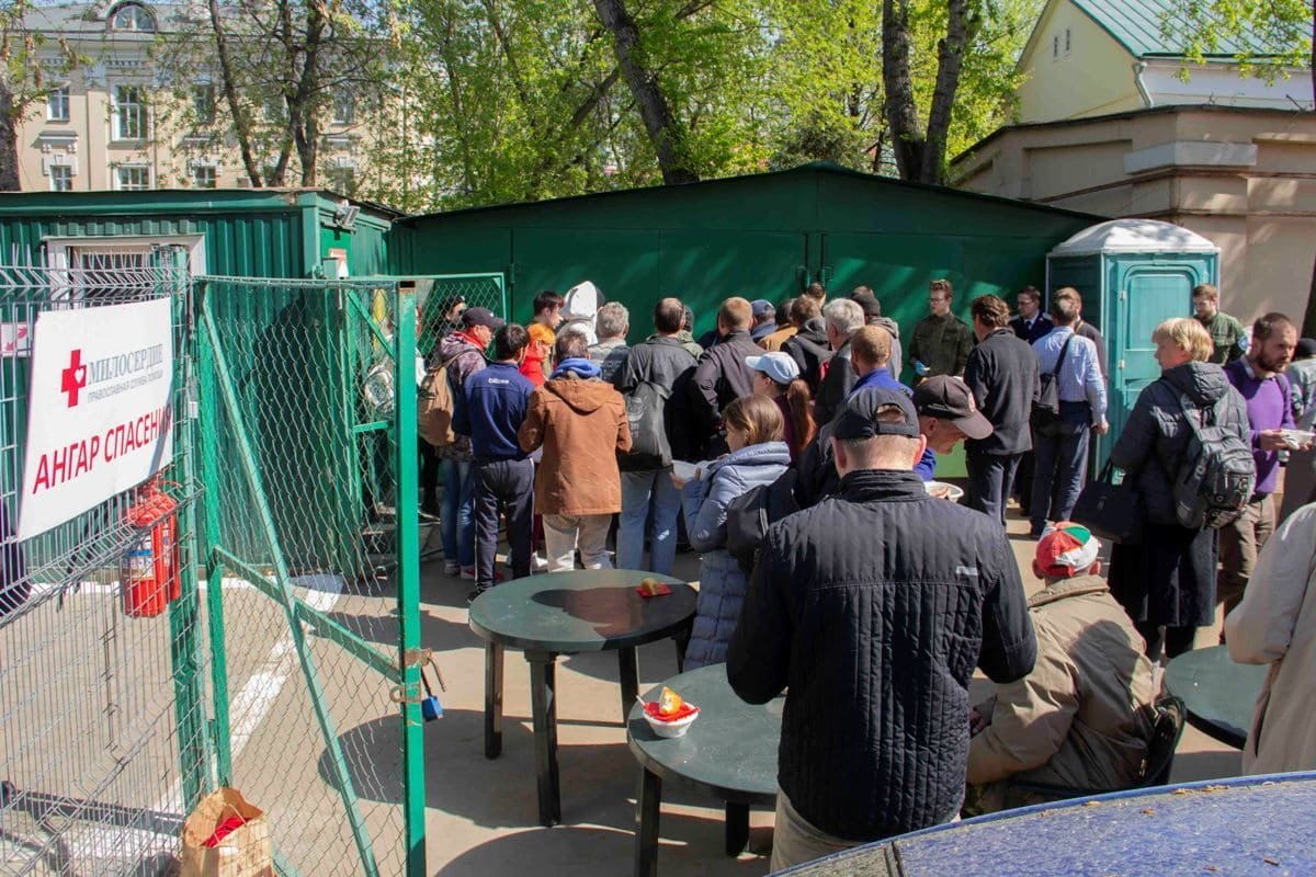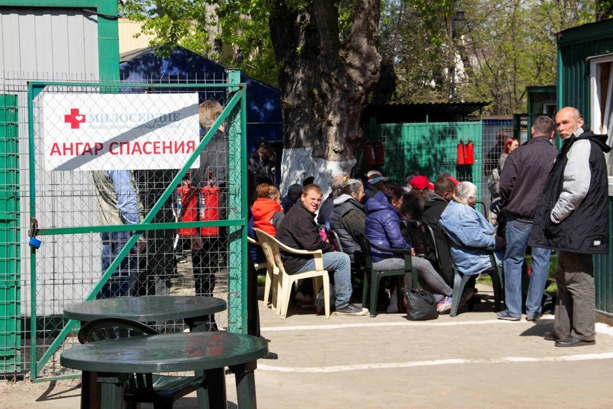Благотворительная акция началась с концерта, подготовленного казачьим ансамблем Первого казачьего университета. Для бездомных и малоимущих артисты исполнили казачьи и военные песни. Затем к собравшимся обратился ответственный секретарь Синодального комитета иерей Тимофей Чайкин. Он поздравил пришедших в «Ангар спасения» с праздником Светлого Христова Воскресения. Говоря о значении Крестной жертвы Спасителя и Его Воскресении для человечества, отец Тимофей отметил, что причиной многих бед в жизни человека становится непослушание Богу. «Но мы не должны отчаиваться и замыкаться в проблемах. Выход есть всегда. Выход, который нам даровал Господь, пришедший в мир, распятый за грехи и воскресший для дарования нового счастья и жизни вечной. То, что невозможно человеку, возможно Богу. Главное не отчаиваться и жить с Богом».