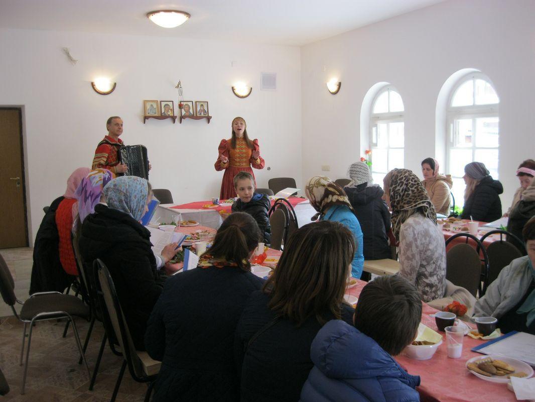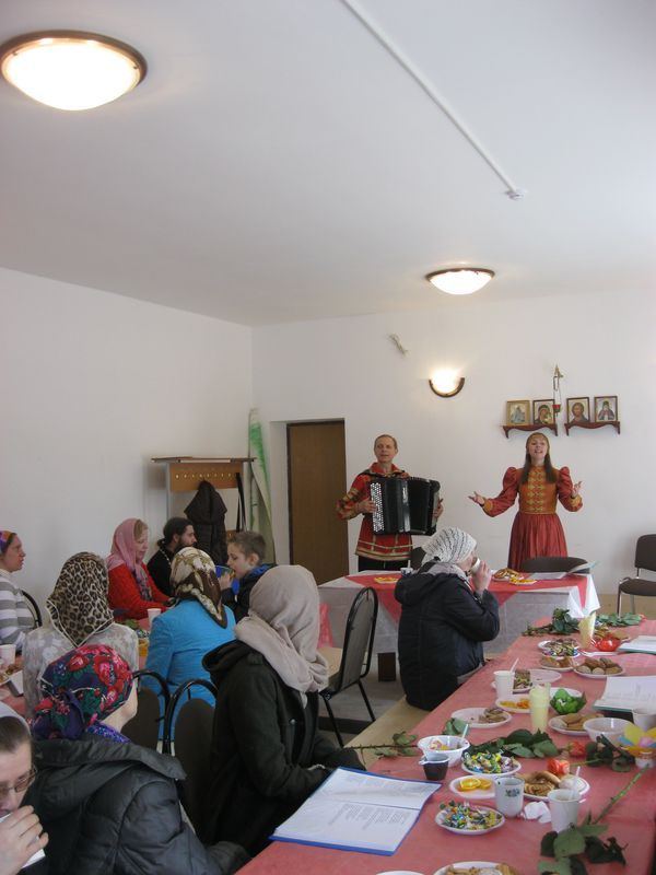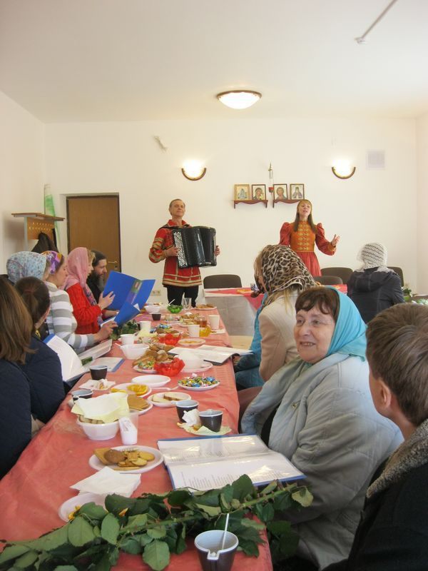 Веселый праздник с чаепитием прошел в крестильном храме. Чаепитие сопровождалось пением русских народных, казачьих, лирических песен, в чем нам помогали профессиональные музыканты: лауреаты международных конкурсов солисты Московской областной филармонии баянист Алексей Кочуров и певица Юлия Журавлева. Праздник прошел радостно, душевно и тепло!