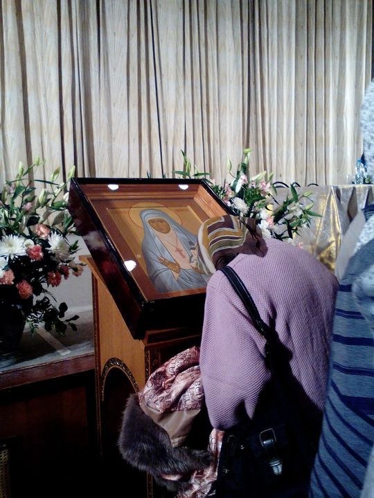 Встреча началась с совместной молитвы перед иконой преподобномученицы Елисаветы Феодоровны. Эта икона с частичкой мощей была любезно предоставлена сестрами Марфо-Мариинской обители.