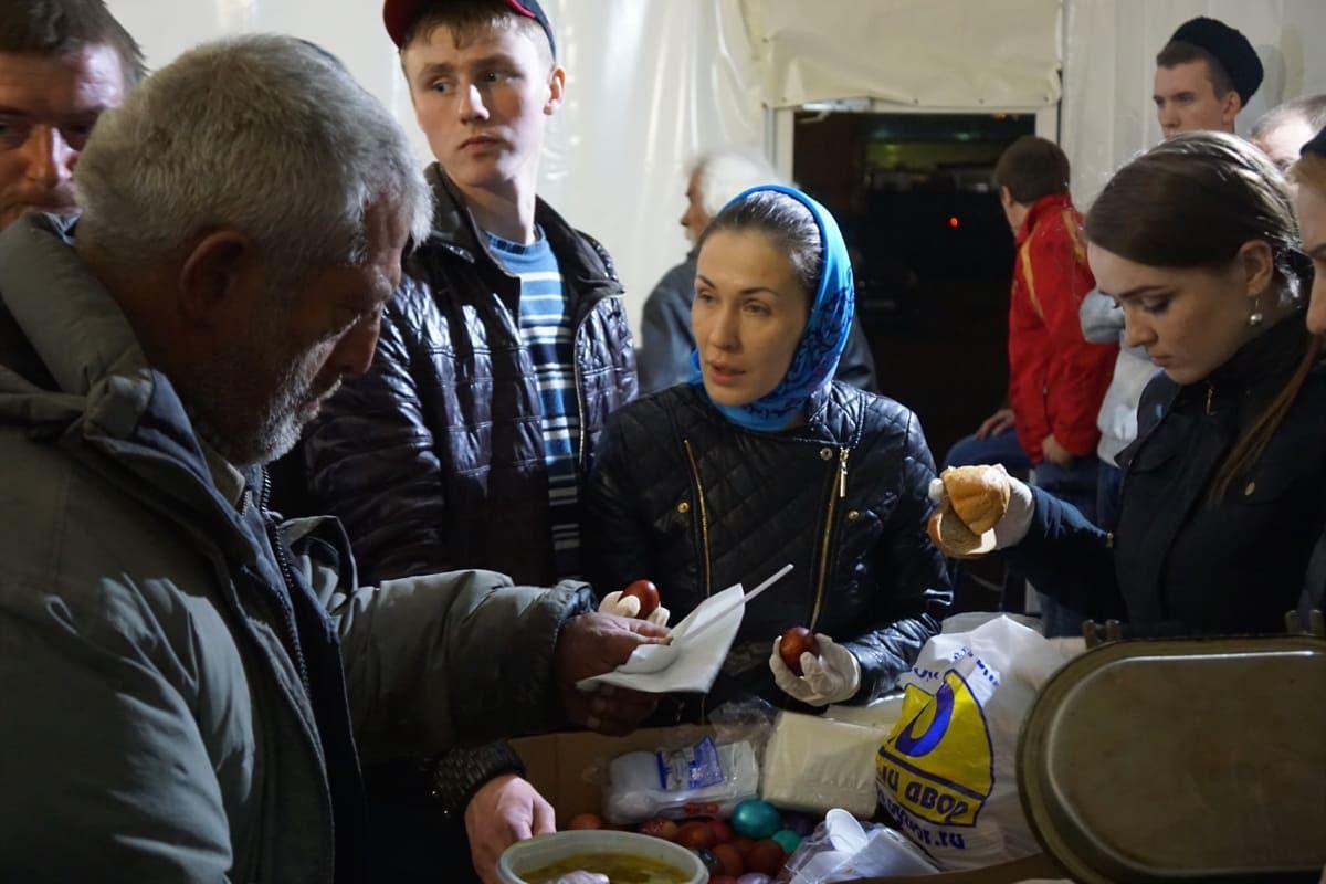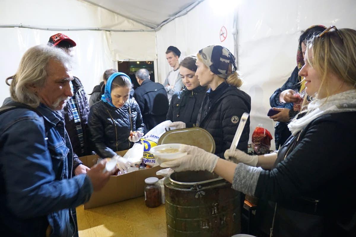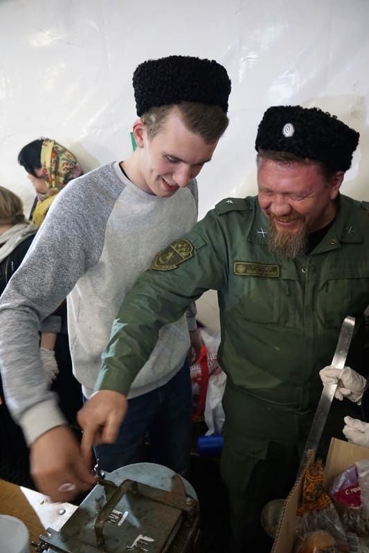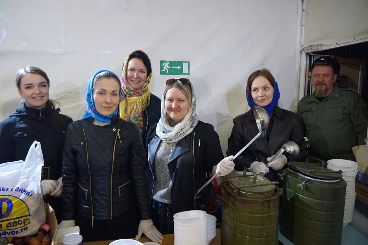 Вот и на Радоницу отец Иоанн, казаки, казачки и сестры милосердия казачьего храма вновь приехали в Ангар спасения, чтобы поделиться не только едой, но и, самое главное, теплом своих душ со страждущими людьми.