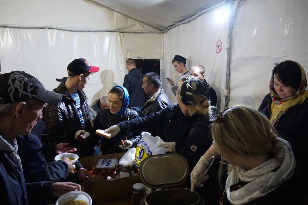 Ангар спасения – это каркасная палатка, в которой бездомные могут согреться и поесть. При Ангаре работает фельдшерский пункт.