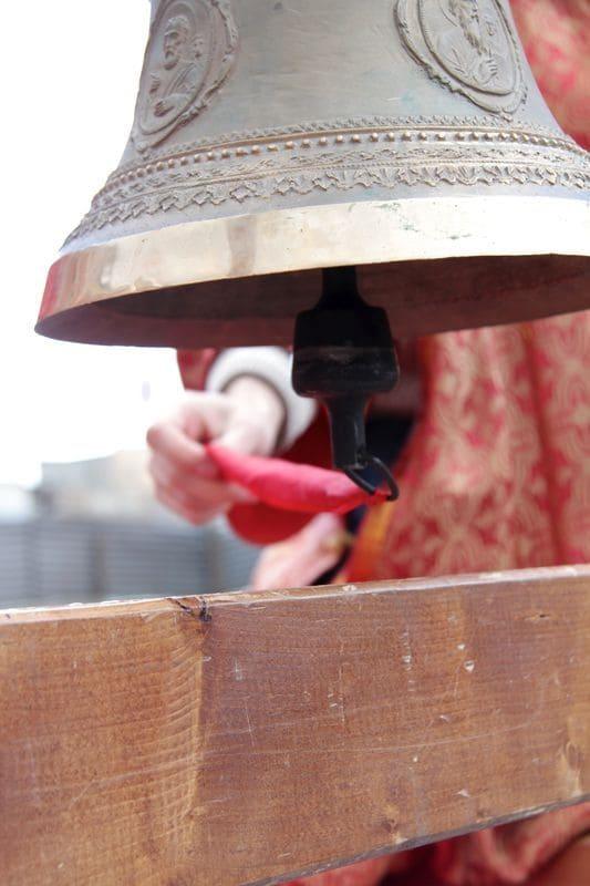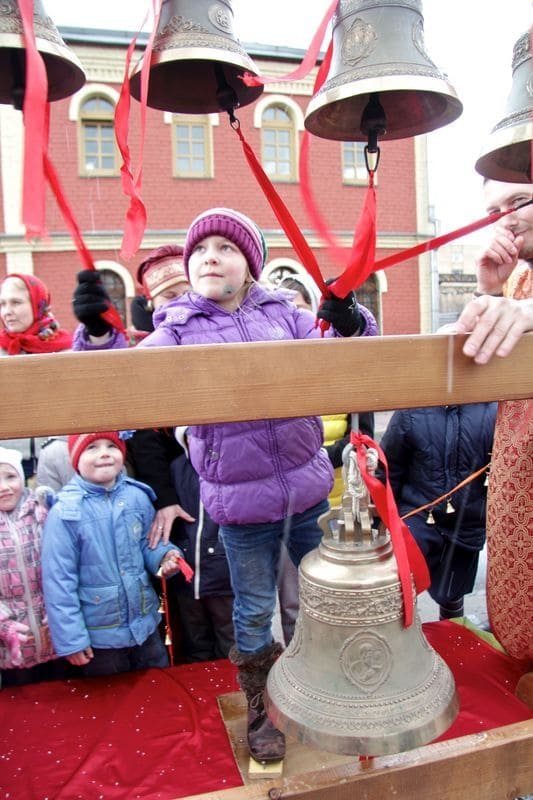 В конце праздника в исполнении звонаря храма Алексея Коробкова прозвучали Пасхальные колокольные звоны. Затем всем желающим предложили позвонить в колокола.