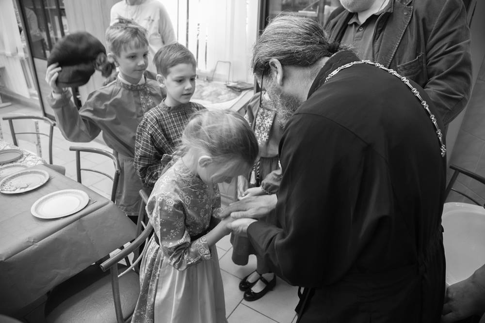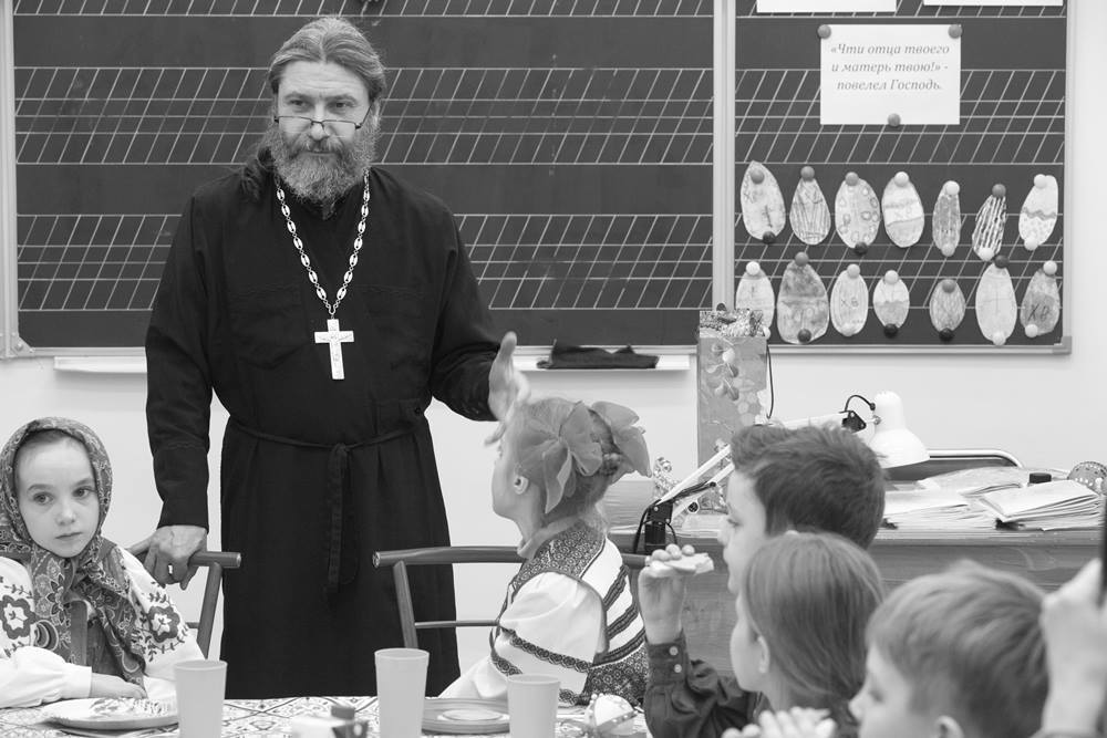 После уроков в школе состоялся праздничный концерт, чаепитие и беседа с батюшкой.