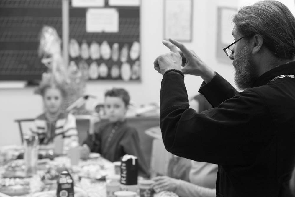 27 апреля 2022 года, в Светлую среду, настоятель казачьего храма посетил Пасхальный праздник в первом классе Русской Классической Школы.
