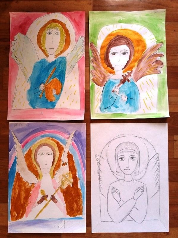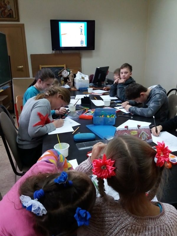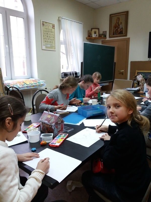 В Воскресной школе нашего храма наряду с основными церковными уроками проходят и творческие занятия. Вот и в изостудии при Воскресной школе ребята получают новые творческие навыки, развивают и проявляют свои таланты. На занятиях ребята под руководством опытного преподавателя рисуют портреты, пейзажи и создают коллективные работы.