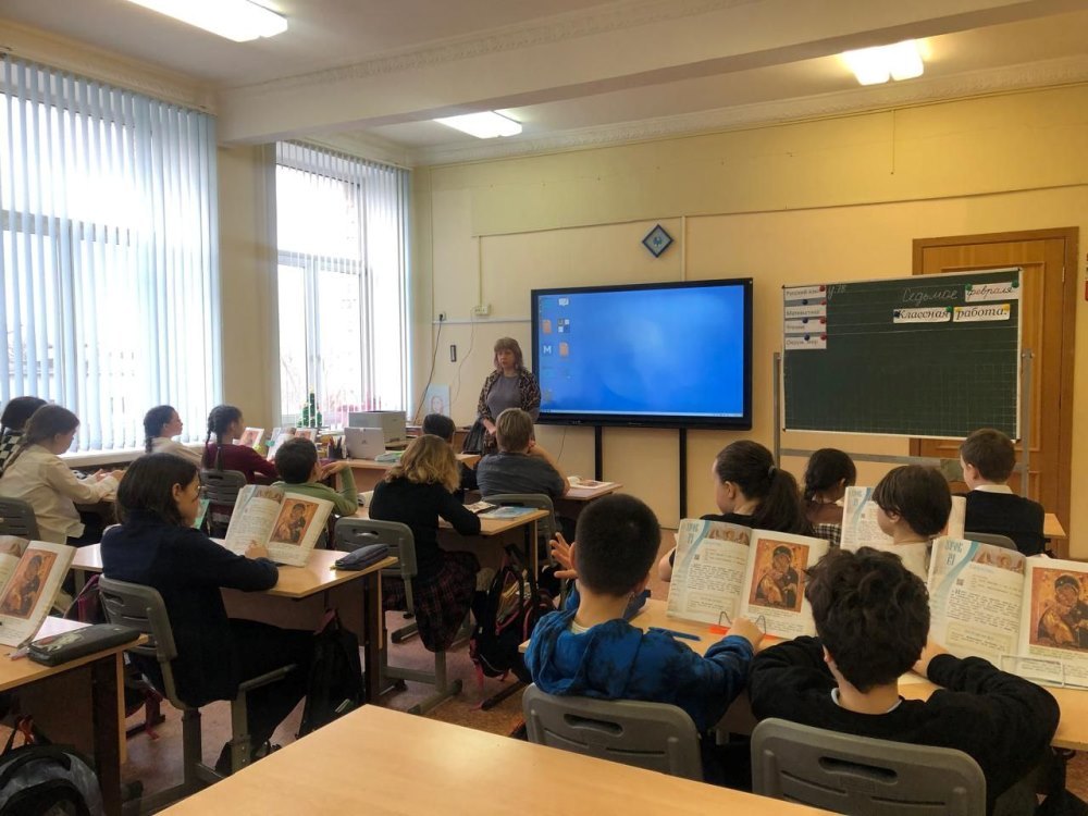 В рамках курса «Основы Православной культуры» прошёл урок для учеников 4 класса. Тема урока: «Православные святые. Преподобные Сергий Радонежский и Серафим Саровский»