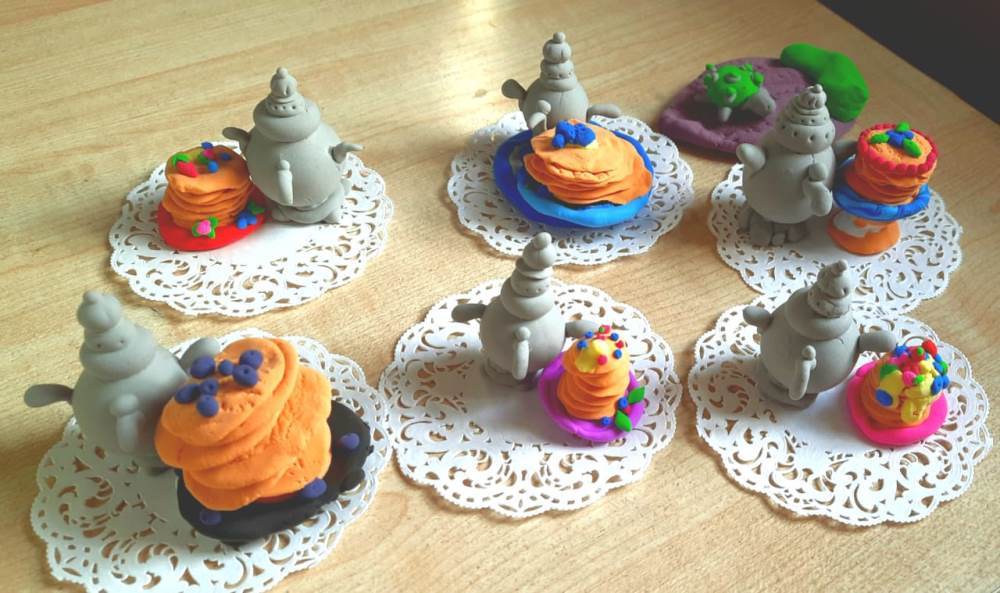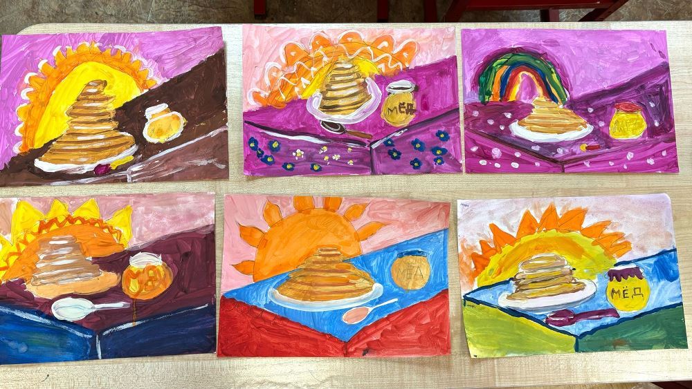 На кружке изо дети рисовали тематические рисунки под руководством преподавателя Кудрявцевой Анны Михайловны, а на кружке лепки создавали поделки из полимерной глины «Чаепитие с блинами».