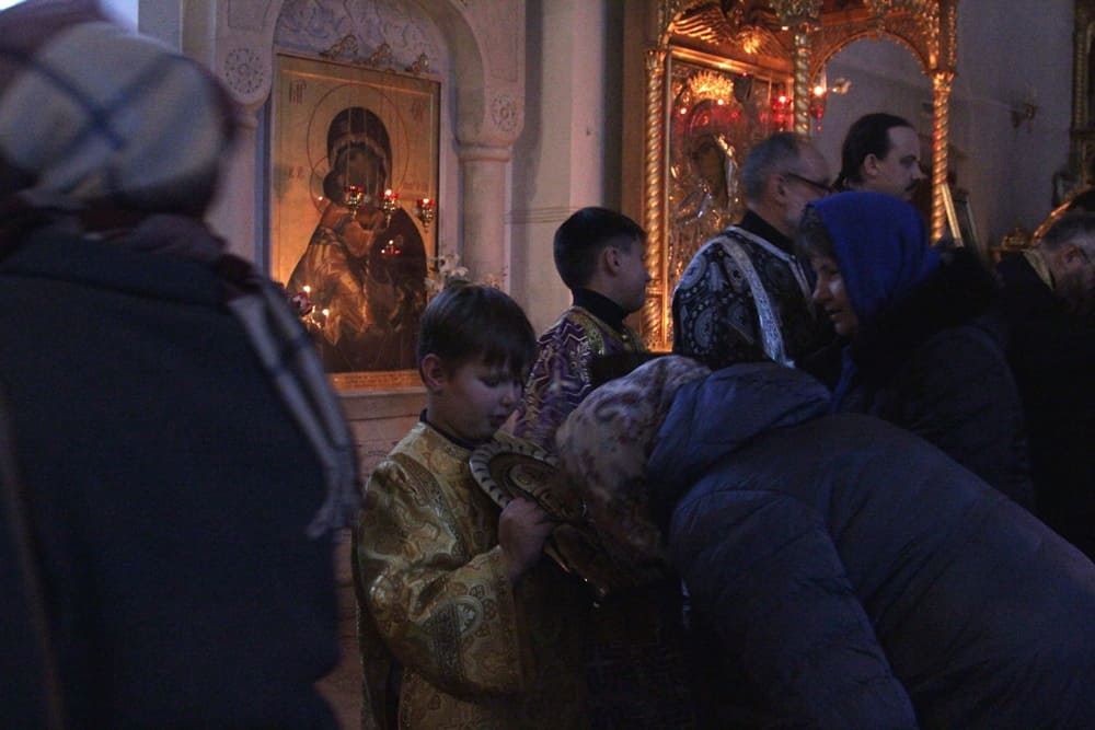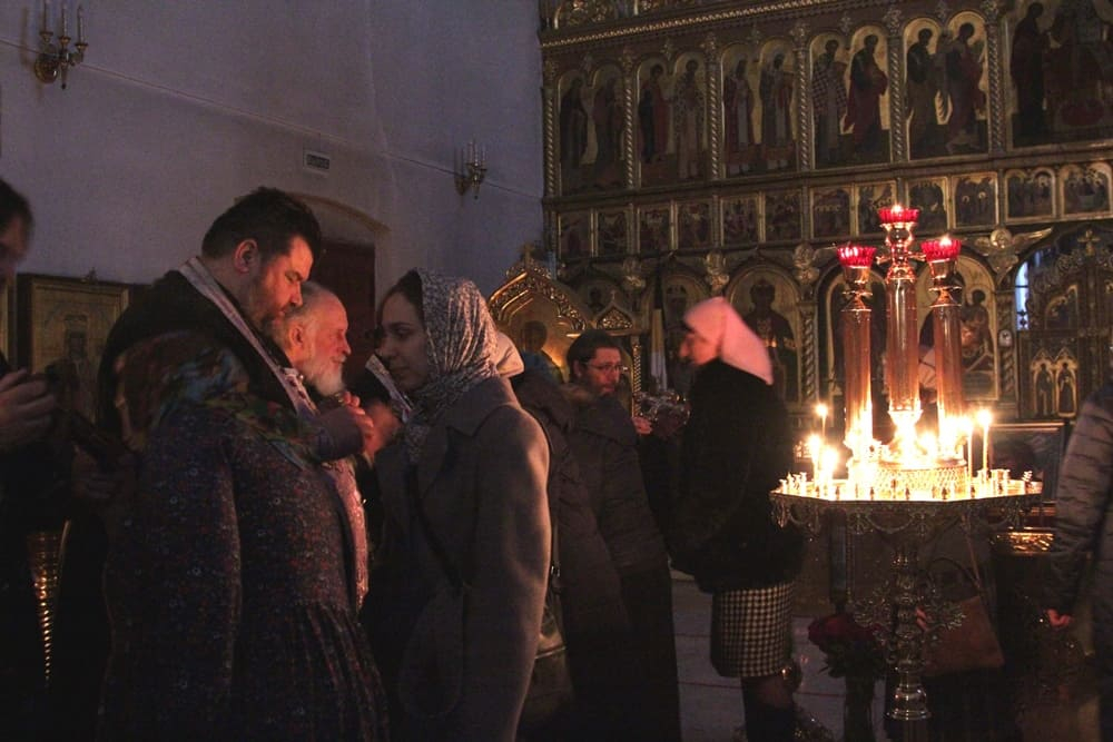 Вечерня с чином прощения 14.03.2021 Вера Новости приходской жизни, Фотогалерея 14 марта 2021 года, в Неделю сыропустную, в нашем храме была отслужена вечерня с чином прощения. В Прощеное воскресенье духовенство и прихожане попросили друг у друга прощения, чтобы с чистым сердцем вступить на поприще Великого поста. [Показать слайдшоу] новости приходафоторепортаж Связанные статьи Фоторепортаж: Всенощное бдение под праздник Святой Троицы, Пятидесятницы, 26 мая 2018 года, в казачьем храме иконы Божией Матери «Отрада и Утешение» на Ходынском поле г. Москвы 26 мая 2018 года, в канун праздника Святой Троицы, в казачьем храме иконы Божией Матери… Слово пастыря: Неделя 16-я по Пятидесятнице Проповедь протоиерея Владимира Купарева за Божественной литургией в Неделю 16-ю по Пятидесятнице 10 октября 2021 года... Занятия в Воскресной школе в октябре 2018 года Занятия в нашей Воскресной школе в самом разгаре! За прошедшие две недели ребята многое успели…