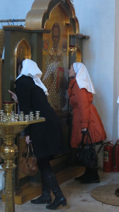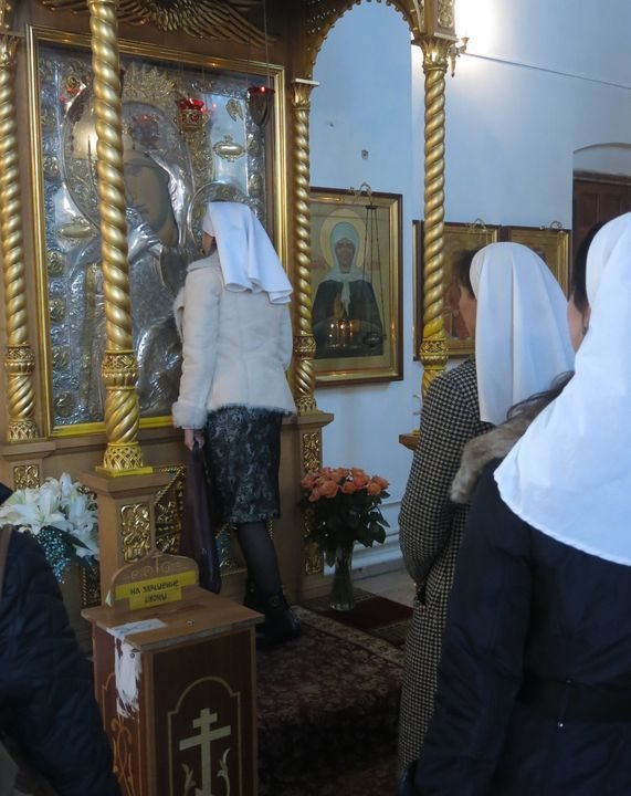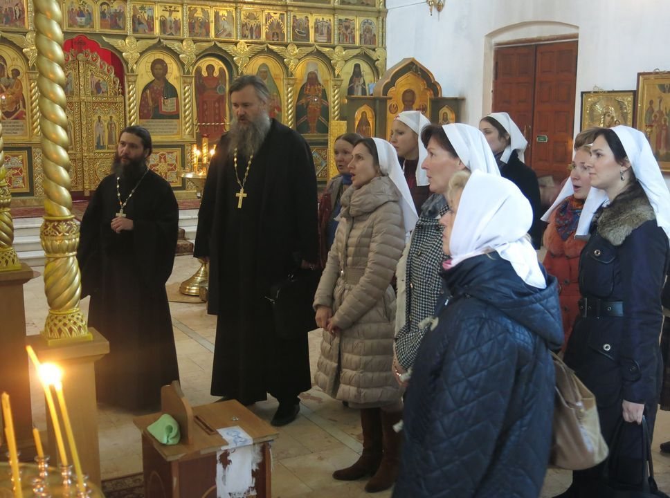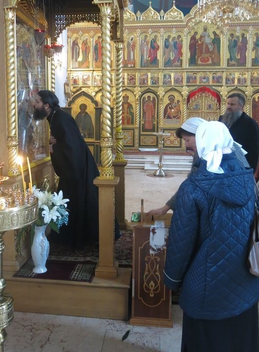 Гости осмотрели убранство храма, поклонились главной святыне – чудотворному образу Богородицы «Отрада и Утешение», посетили фотовыставку в память преподобномученицы Елисаветы в библиотеке храма.