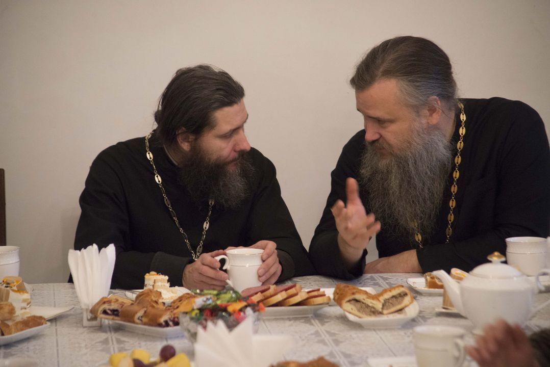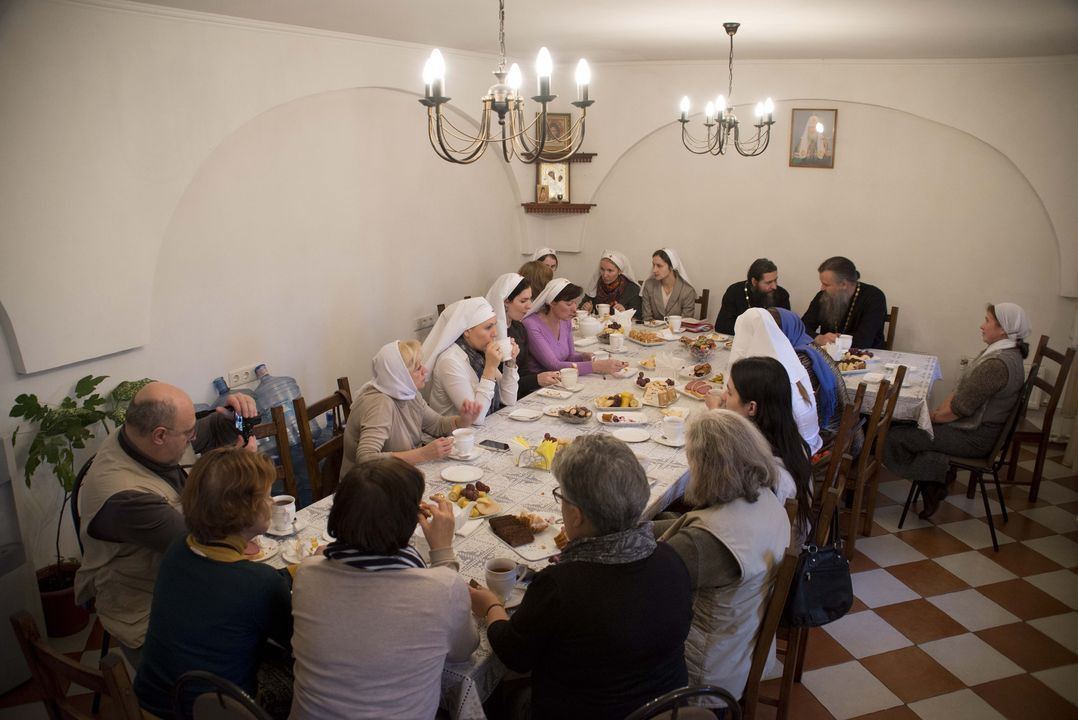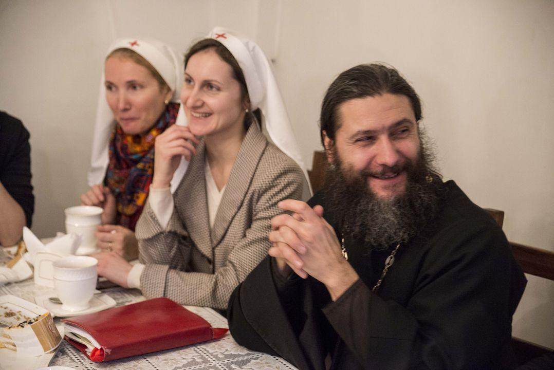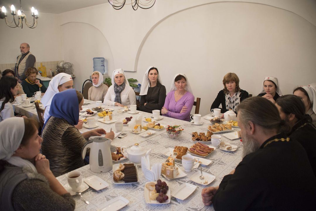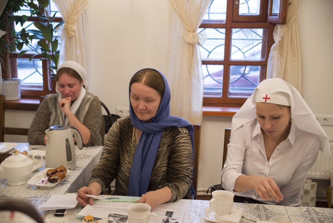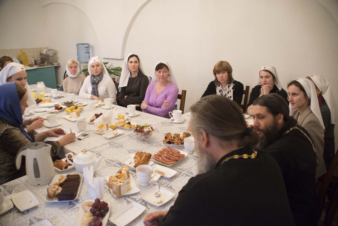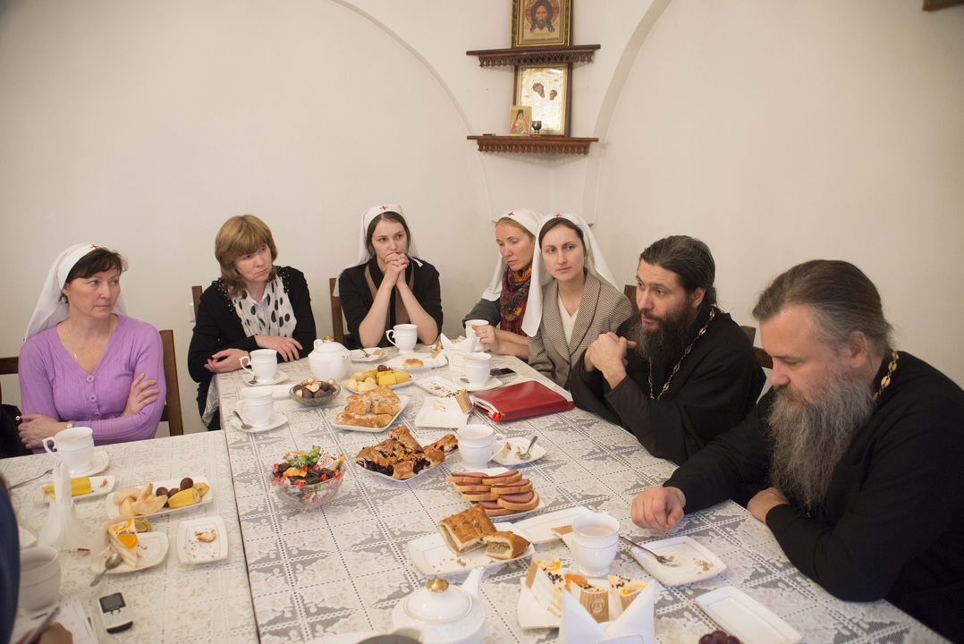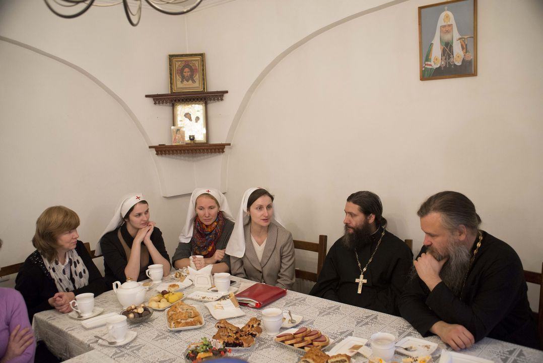 Затем в трапезной состоялось чаепитие, за которым настоятели двух храмов и сестры обсудили духовные вопросы и обменялись опытом организации сестринского служения на приходах. Основной темой обсуждения стала подготовка к конференции сестричеств, посвященной многолетнему опыту служения Богу и людям Марфо-Мариинской обители милосердия. Конференцию планируется провести в декабре этого года. Сестрам интересно проанализировать опыт диаконического служения Елизаветы Федоровны, а также понять, как этот опыт можно применить сегодня.