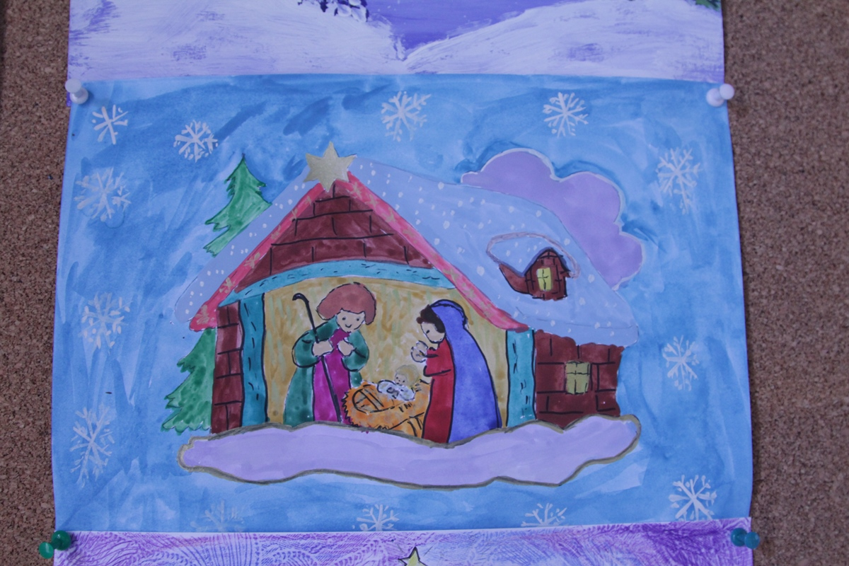 Предлагаем вашему вниманию выставку детского рисунка, посвящённую Рождеству Христову.