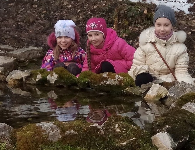 Неожиданно для себя мы попали на удивительно теплую солнечную весеннюю погоду, а в начале марта все так соскучились по теплу. Попили наипрозрачнейшей водицы, умылись, самые отважные трижды окунулись… Как же здесь хорошо! Кругом первозданная красота! Берёзы, сосны, ёлочки и прозрачный, даже немного дрожащий воздух… Слева — изумительная деревянная беседка с золотым, сверкающим на солнце ангелом на шпиле крыши, внизу — маленькая речушка весело убегает изгибом. Здесь тихо, спокойно и умиротворенно. В тишине оврага слышны только журчание воды и щебет птиц. Хорошо!